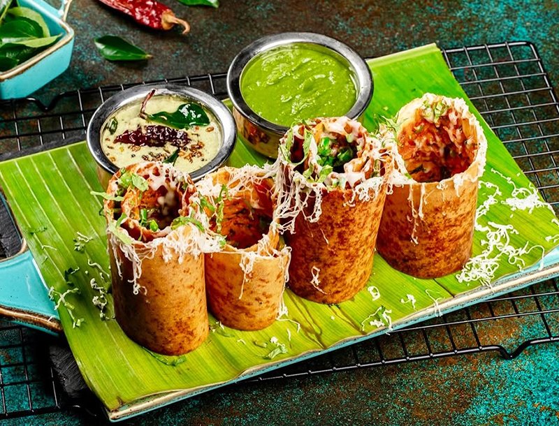 Step into the South of India with our dosa creations, each one a masterpiece of crispiness and flavor. The classic Masala Dosa is a must-try, with its savory filling of spiced potatoes. For an innovative twist, the Spring Roll Dosa combines crispiness with vibrant flavors, while the Pizza Dosa offers a cheesy, indulgent treat perfect for kids and adults alike.